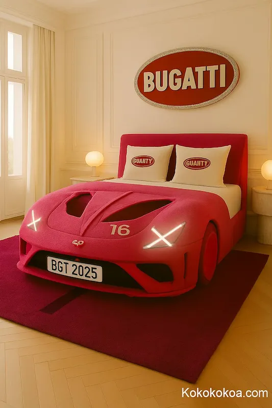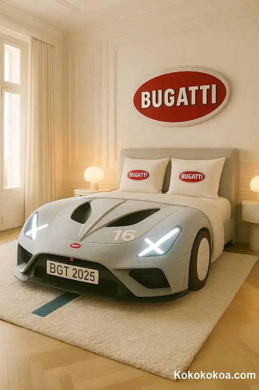 Not just for kids, the Bugatti bed is a unique interior piece for adults who love automotive design. Whether placed in a personal bedroom or entertainment room, it becomes a focal point that expresses taste and individuality.